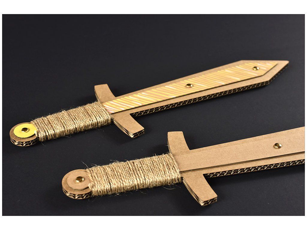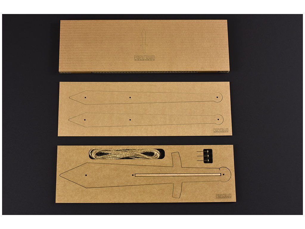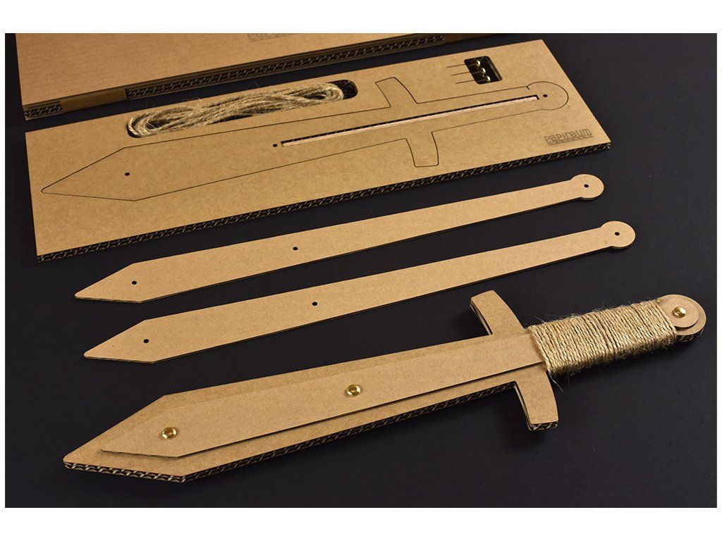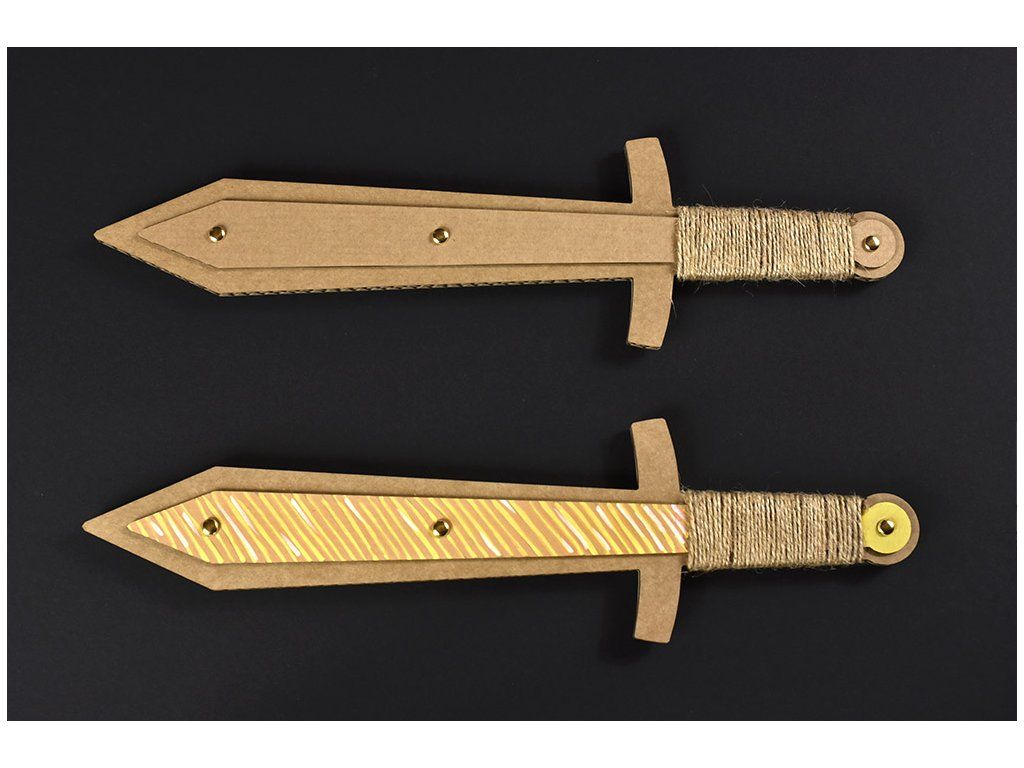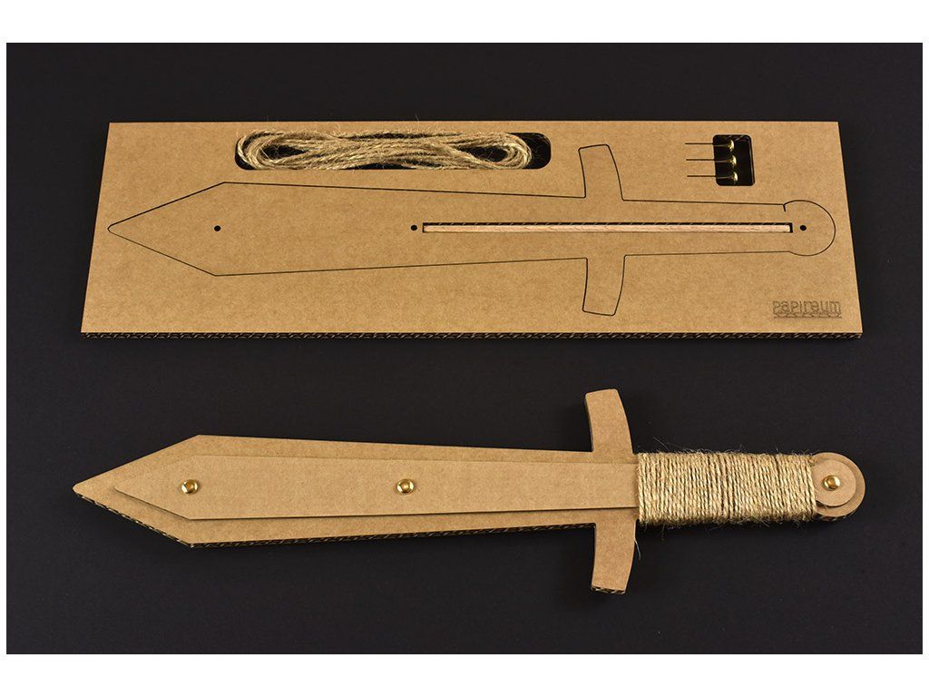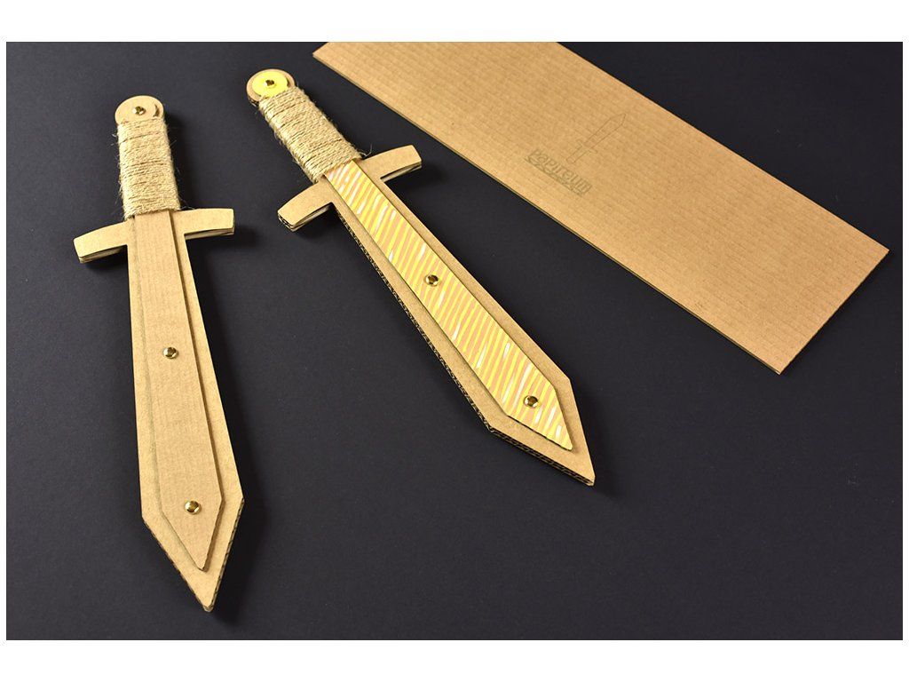 Meč ze 3 vrstev kvalitní papírové lepenky, vystužený dřevěnou tyčkou.